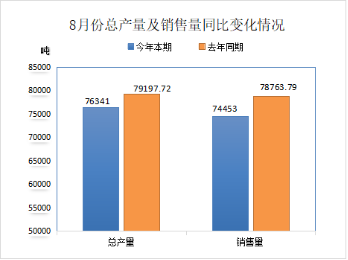 (2)2025年8月份再生胶、胶粉现价工业总产值35741万元,同比增长2.92%,环比下降2.61%;工业销售产值34435万元,同比增长2.28%,环比下降3.99%。产品出口交货值(现价)656.48万元,同比下降28.19%,环比下降25.69%。