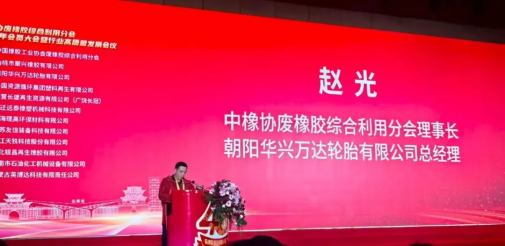 在中国橡胶工业协会废橡胶综合利用分会40周年会员大会上,中国橡胶工业协会正式确认朝阳华兴万达轮胎有限公司继续担任中国橡胶工业协会第十届理事会橡胶资源循环利用分会理事长单位;华兴万达董事长赵光继续担任中国橡胶工业协会第十届理事会橡胶资源循环利用分会理事长。